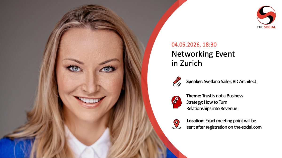 Dear Socialites in Switzerland, We are happy to invite you to our next physical networking event in Zurich on May 4. Speaker: Svetlana Sailer, BD Architect Theme: Trust...