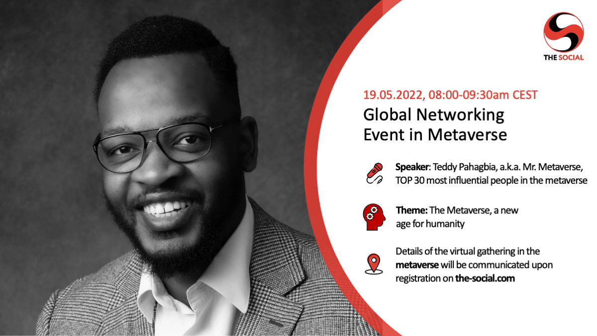 Global virtual networking event in the Metaverse on May 19. Teddy Pahagbia, a.k.a. Mr. Metaverse, discussed The Metaverse as a new age for humanity.