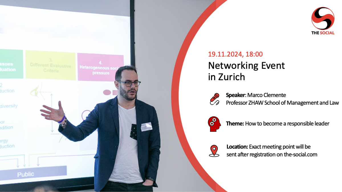 Zurich Networking Event in Zurich 19.11.2024 Posted by superadmin 28/01/2025 On 11/11/2024 Physical networking event in Zurich on November 19. Speaker: Marco Clemente, Professor ZHAW School of Management and Law Theme: How to become a responsible leader Location: Exact meeting point will be sent after registration on the-social.com