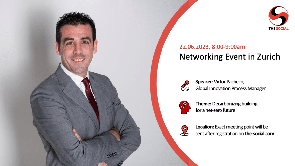 Zurich Networking Event in Zurich 22.06.2023 Posted by superadmin 19/08/2024 On 10/06/2023 Physical networking event in Zurich on June 22. Speaker: Victor Pacheco, Global Innovation Process Manager Theme: Decarbonizing building for a net-zero future Location: Coffee shop near Paradeplatz